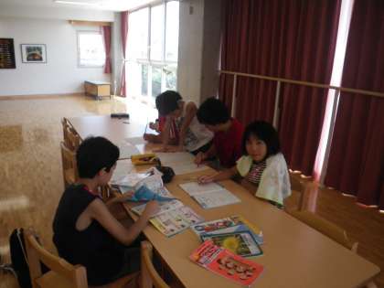 5年生のぐんぐんスクールも今日で2回目、最終回です。前回もそうでしたがプールが終わった子がエアコンのきいた多目的室にきます。それぞれが自分のやるべき問題を持ってきます。ぐんぐんスクールでは先生一人占めが出来るようです。矢野先生、柴田先生と密着して勉強しています。苦手なことを少しでもなくしていけたらいいなあと思います。(校長 箭内)