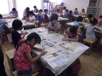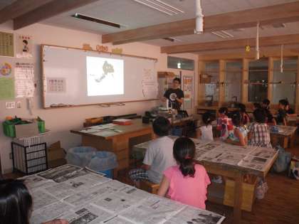 午後の講座は「マイ箸作り」です。講師は箸を作っている会社の方です。ですから箸の歴史から箸の持ち方など分かりやすく教えていただきました。そして、いよいよ自分用の箸作りです。箸の長さも決まりがあるのです。ひとあた半の長さに自分で切ります。「自分でのこぎりで切ったんだよ」と自慢げに子どもたちは話していました。角をやすりで丸くします。仕上げは講師の方が会社に持ち帰りやってくださるそうです。九月に届きます。楽しみです。(校長 箭内)