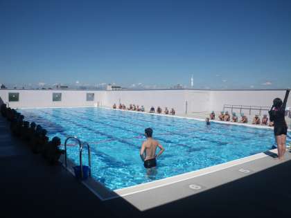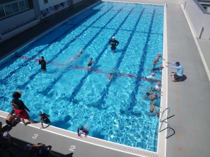 夏休み、後半のプールが始まりました。まずは3、4年生です。太陽はギンギンに輝いています。暑い夏はプールが一番です。水に親しみ泳力を高めてほしいと願っています。プール指導も泳力別に指導しています。後半参加者が少なくなる傾向にあります。家にいる人は是非学校のプールに参加してください。(校長 箭内)