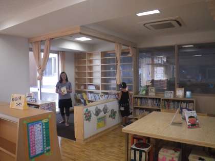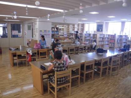 京西アカデミー 読み聞かせの時は図書室に来る子どもたちが多いようです。普段よりたくさんの子どもたちが図書室で本に向き合っています。