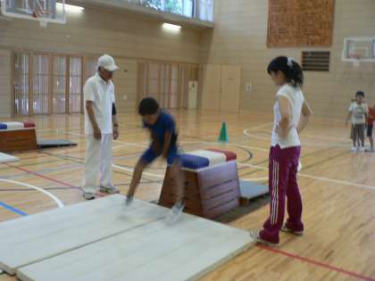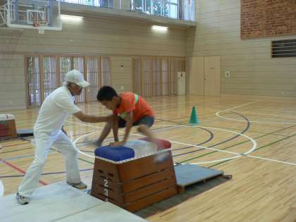 今日の京西アカデミーは「跳び箱の苦手な子集まれ」です。元中学校の体育の校長石井先生が昨年に続き講座を持ってくれました。京西小学校の若い先生方もお手伝いで参加です。全員跳ばせたいと、石井先生はプログラムを考えています。子どもたちも暑い中、頑張っています。汗の量だけうまくなれる。そんな言葉が浮かぶ講座です。(校長 箭内)