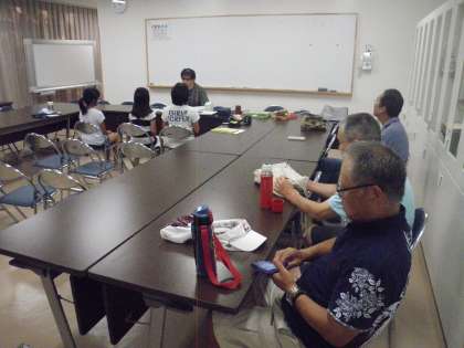 白い杖を持っている人を見かけたことがありますか。との質問には参加者三人が皆手をあげていました。さて、ここからが核心です。目の不自由な人はどんな困難さを持っているのだろう。どのようにお手伝いすればいいのだろう。実際に目の不自由な方のお話はとても説得力、切実感があります。参加者の三人はとてもよい勉強をさせたもらいました。
