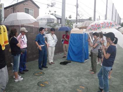マンホールトイレは、近くの井戸の水で流します。ですから井戸の水を1時間、2時間も汲みためておく必要があるそうです。トイレを使ったら50回水をためる等の決まりが必要になりそうです。