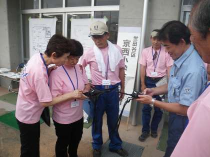 震災時は電話は通じにくくなります。写真は、防災無線のやり方を確認しているところです。
