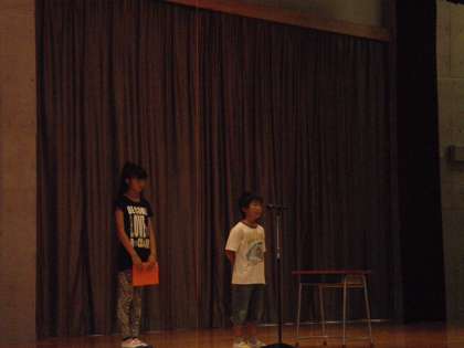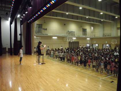 京西小学校の始業式では5年生が2学期に向けての決意を話しました。堂々とした態度、力強い内容でした。