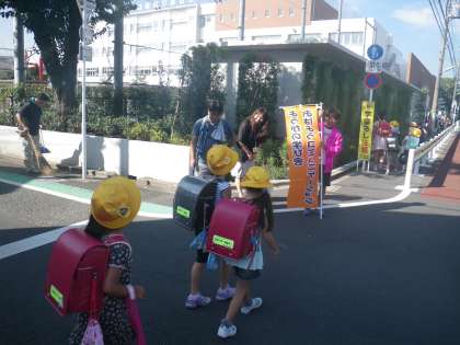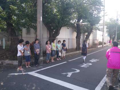 また、通学路にも立っています。町全体にあいさつの輪を広げていくためです。高校生もこちらから挨拶をすると元気よく挨拶を返してくれます。もちろん町の人もにこやかにあいさつを返してくれます。(校長 箭内)