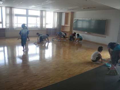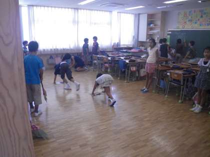 掃除の時、誰にも話しかけません。助け合って掃除をします。仕事を見つけ行います。