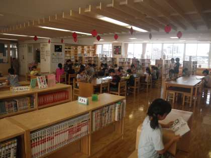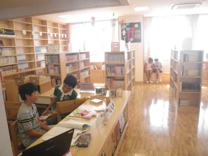 残暑が厳しく、休み時間も太陽が照りつけます。それでも校庭からは子どもたちの声が響いてきます。校舎内をめぐり図書室に行ってみました。子どもたちがたくさんいて、本を読んでいます。図書室はエアコンが効いています。図書委員の子どもたちも詰めていました。残暑の暑さだからこそ本を読む。これもいいことかもしれません。