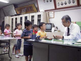 ちゃんとおぼえたか、校長先生にチェックしてもらっています。