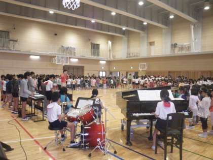 今日から学校公開週間です。スタートは音楽朝会です。全員合唱は「この星に生まれて」です。これは11月のワンダーランドでも歌います。いまから練習です。音楽委員会の子どもたちも一生懸命に演奏しています。(校長 箭内)