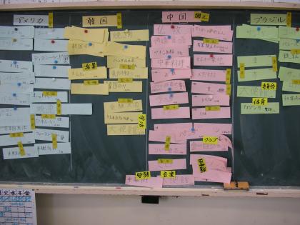 社会では、日本とつながりのある国々について学んでいます。まずはその国と日本についてつながりを表しているもの(こと)をたくさん書き出しました。これからさらにくわしく学んでいきます。