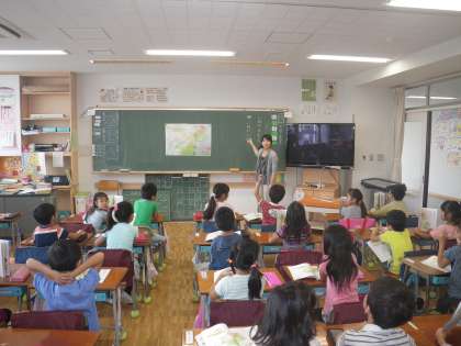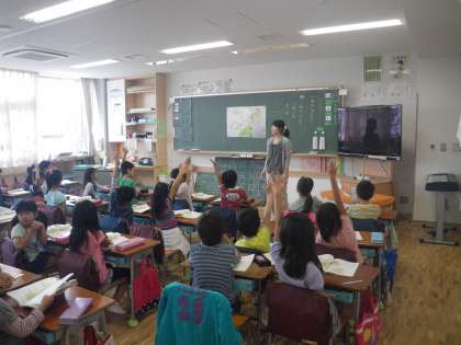 学校公開週間です。1年3組に行きました。我妻先生です。国語の授業です。「いぬのきもち」という単元を勉強していました。