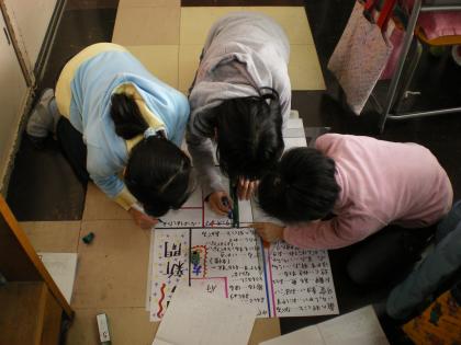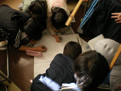 社会では東京の伝統工芸について調べています。インターネットや図鑑を基に、グループで選んだ伝統工芸についてまとめています。「これって家で見たことあるよ」とか聞こえてきます。