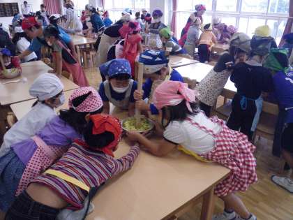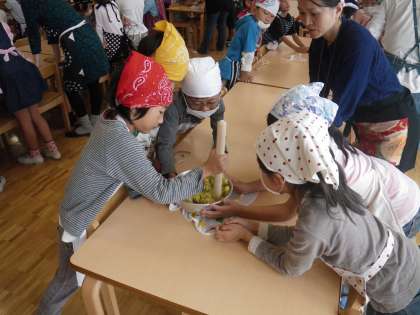 美味しい、ヘルシーな茶巾しぼりがたくさんできました。お手伝いの保護者の皆さま有難うございました。(校長 箭内)