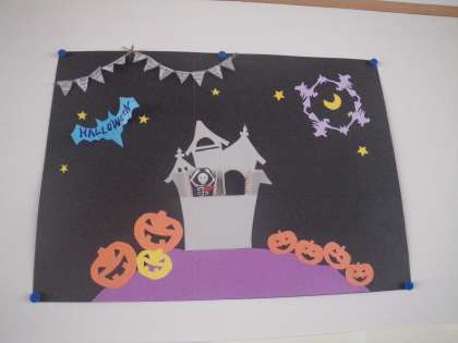 10月になり図書室の装飾が変わりました。ハロウィンです。とても素敵です。10月は読書月間です。大人も子どもたちも本に親しんでもらいたいと願っています。(校長 箭内)