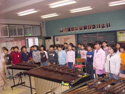2年生は2月28日(木)に音楽朝会で「こぐまの二月」「春が来た」を