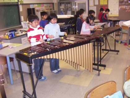 友だちの音をきいて、自分の音とあわせて、みんなの心をぴったりにします。