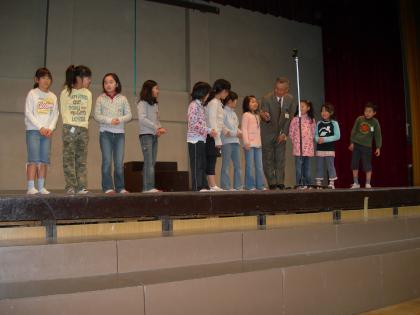 百人一首を百首覚えた人がいます。朝会で好きな歌を詠みました。リズムよくとっても上手でした。まだ百首暗唱していない人もがんばりましょう。
