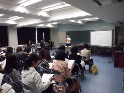 同時に特活室では保護者の方々が先生方から用賀中学校の説明を聞いていました。