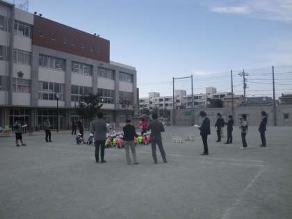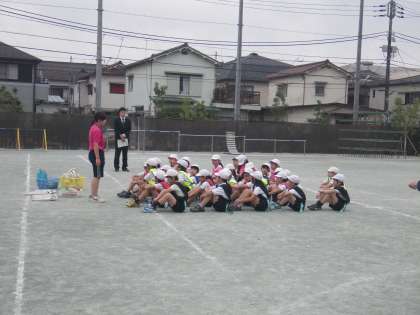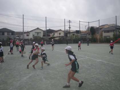 テーマを「できる楽しさを味わわせる指導の工夫」とし、「タグラグビー」の授業でした。子どもたちの動きが素早く、てきぱきとしているので無駄な時間がありません。3試合もゲームをやりました。へとへとになるほど走りまわっていました。
