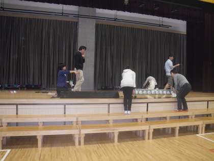 11月30日(金)12月1日(土)はワンダーランドです。今年は学芸会です。子どもたちは先生と一緒に練習を始めています。同時に会場の準備もみんなで進めています。昨日は体育館にビニルシートを敷きました。今日は照明をセットしました。着々と準備を進めています。各学年では衣装その他のご協力をお願いしているかと思います。みんなで劇を作り上げていければと願っています。(校長 箭内)