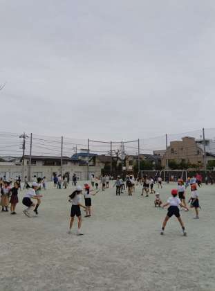 縄跳びをしている子もたくさんいます。今2年生に「返し跳び」伝授しています。できる子が少しずつ出てきました。跳ばない縄跳び「返し跳び」、ちょっとできる感じを出せるのでおすすめです!