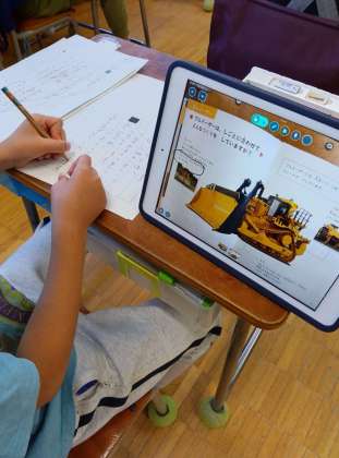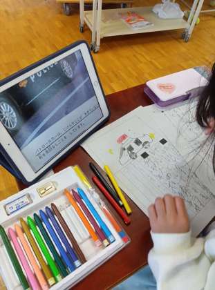 1年生の国語「じどう車くらべ」の学習です。