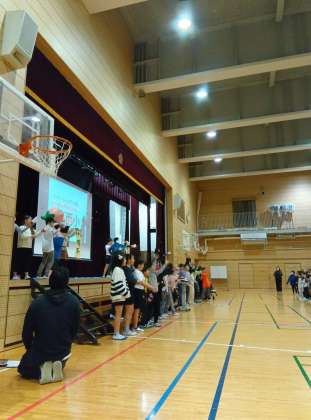 お祝いの玉手箱やー、状態でした。校歌を歌って児童集会は終わりです。