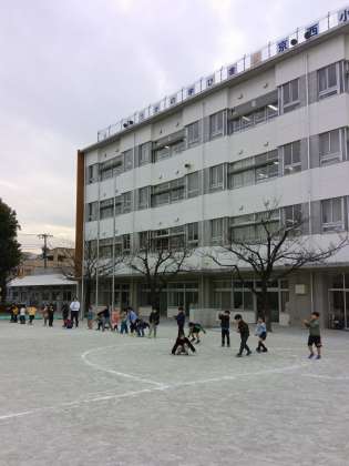 1年生の昔遊び、外編です。校庭で「竹とんぼ」と「羽根つき」をしていました。