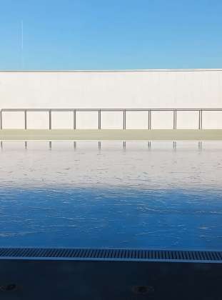 最近、寒さが一段と厳しくなってきています。特に朝はかなり冷え込みます。分かりにくいですが、写真のように4階にあるプールの水は凍っています。