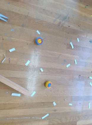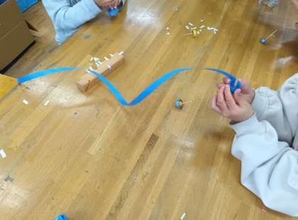 こまがきれいによく回っています。アレンジを加えて、オリジナルの形を作っている子もいます。