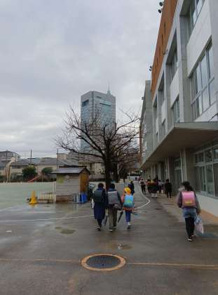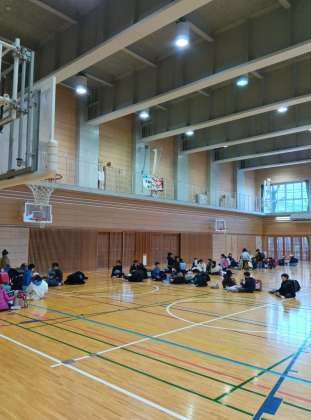朝少し雨が降っていました。児童が登校して来る頃には止んでいましたが、校庭がぬかるんでいたため、体育館での待機になりました。