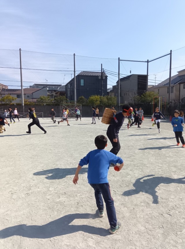 さすがに4・5・6年生は足も速く、ハンターたちもだいぶ本気を出しているように見えました。それもあって結構捕まります。しかし、初めのミッションである「玉入れミッション」では、まさかの逃走者たちの成功(想定では、失敗→ハンター追加の予定でしたが)で、ハンター追加10体できず!