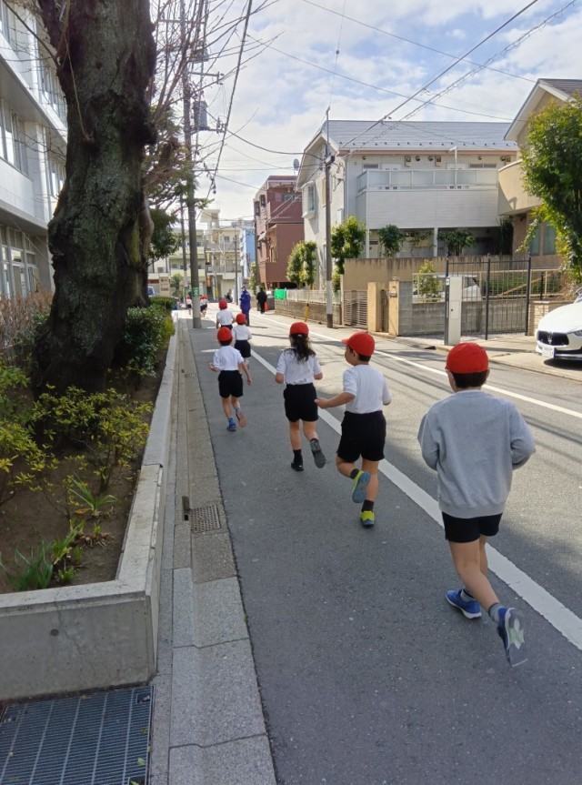 ルートの要所や曲がり角の交差点には主事や教員が立ち誘導と安全管理をしています。そして、たくさんの保護者の皆様にも来ていただき、あたたかい応援の中でがんばりました。応援にも支えられ、みんないいペースで走っていました。1年生のがんばりの様子を写真で御覧ください。