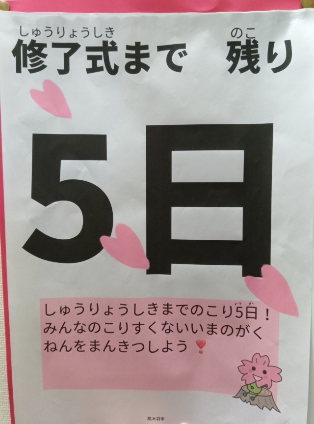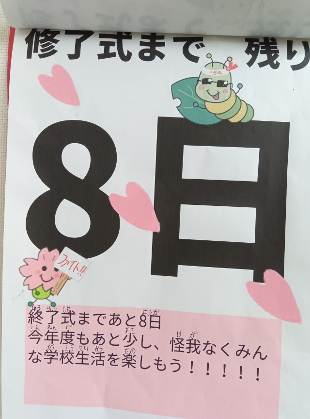 (ところどころ「終了式」になっていますが、小学生あるあるということで、お許しください。そのまま載せます。)