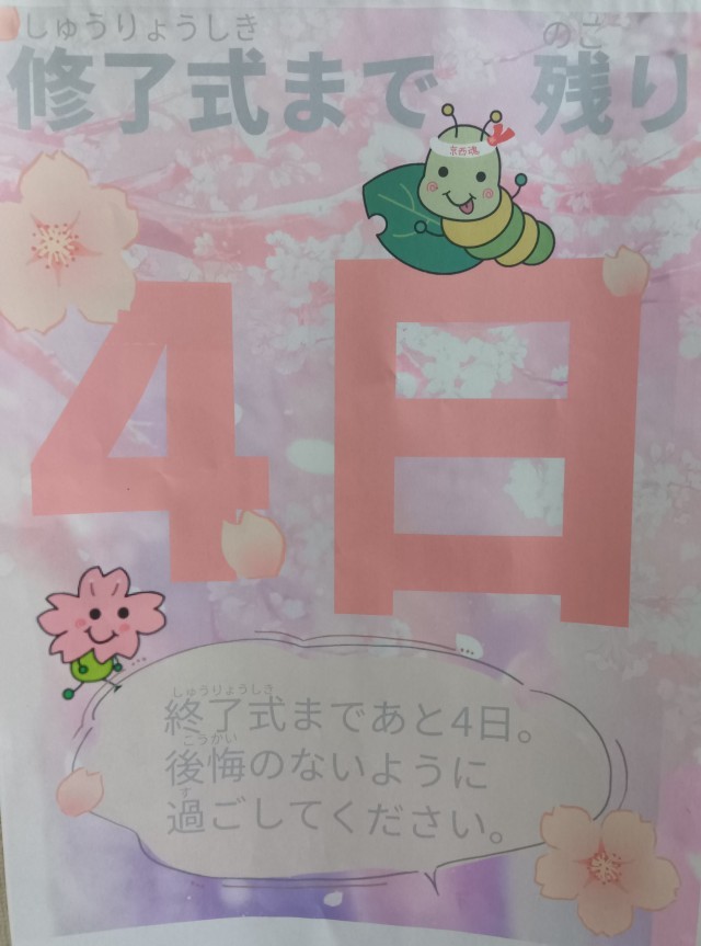 代表委員会の修了式カウントダウン、「あと9日」の後、御紹介していなかったのでまとめてこちらに。今日が「あと4日」です。