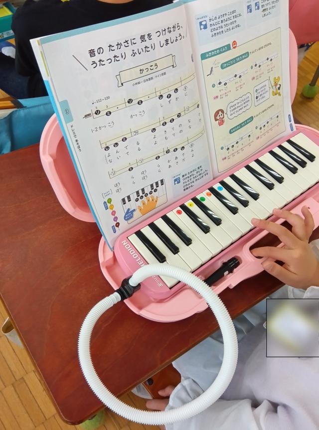 2年生の音楽、鍵盤ハーモニカの練習をしていました。