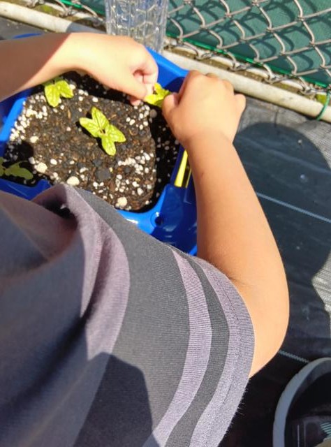 ふたば学級の1年生があさがおの観察に出かけていました。ふたば学級のあさがおは第2校庭の横のフラワーランドにあります。芽は出ているでしょうか。