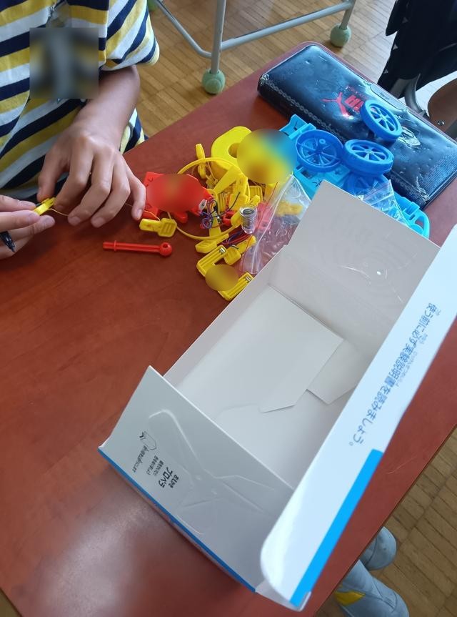 4年生の理科「電流のはたらき」の学習で使う実験キットが配られていました。電気の力で車を動かす教材です。これは絶対楽しいやつ♪子どもたちもちょっと興奮気味でした。