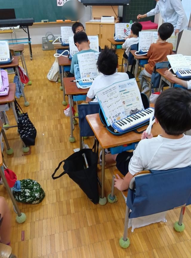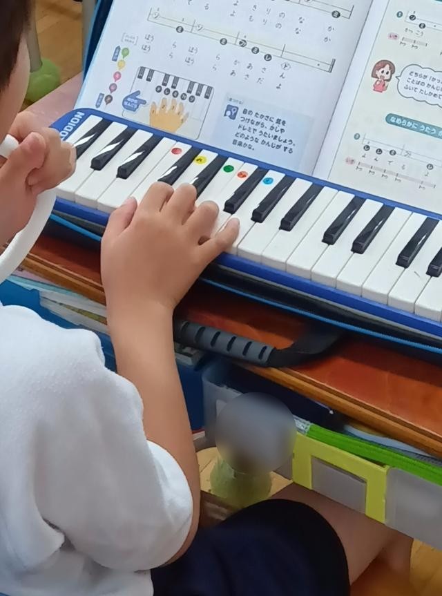 いやあ、鍵盤ハーモニカを指使いを守って弾く2年生、かっこういい♪
