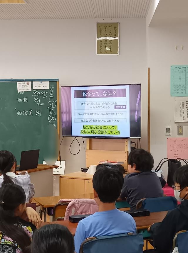 税金のお話を通して、「社会の仕組み」にも目を向けられました。18歳、あと6年後には選挙権をもつ「成人」になる6年生です。自分の一票、自分の力で社会や税金の仕組みを作っていく立場にもなります。そう言った意味でも、未来に目を向ける大変有意義な機会になりました。ありがとうございました。