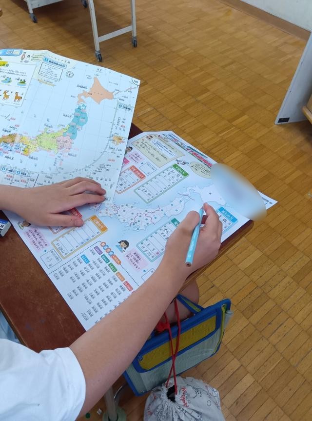 4年生、都道府県名を覚えようと練習をしています。4年生の社会科では主に「東京都」についての学習をします。それとともに、5年生からの日本全体に地域を広げた学習に向けて都道府県名や県庁所在地と位置を覚えるのです。時期を合わせて、「都道府県の漢字」も学習内容として加わり、学習しているのは、すでに今年度もお伝えしているところです。