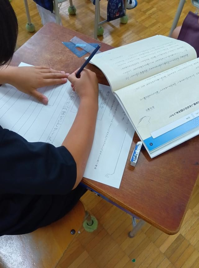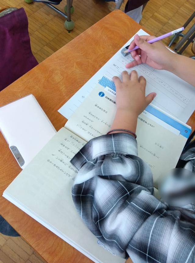 が「良い時間帯」として挙げられその具体例や理由が続けて述べられていますが、この日は読んだり意味について考えた後、自分が考える「春はー」「夏はー」「秋はー」「冬はー」について考えていました。理由やさらにその様子について描写する、「春はー」に続く部分も書いていました。ある子のものです。「春はー」が何を書いたか分からなかったんですが、それに続く部分として、