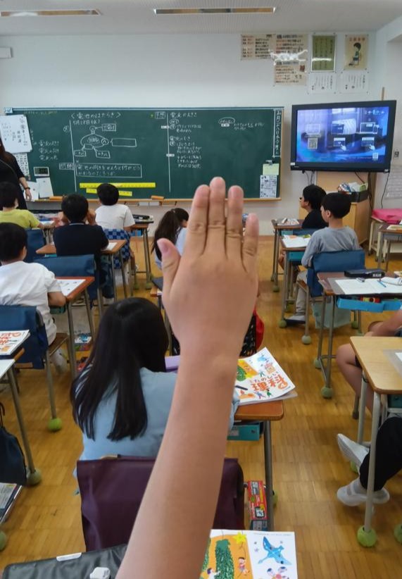 さて、4年生の理科「電流のはたらき」の学習で激論が交わされていました。電池の向きを変えると電気の流れはどうなるか、意見を出し合っています。乾電池にはプラス極とマイナス極がありますが、乾電池のプラス極からだけ電流が流れているという考え方と、両方の極から電流が流れているという考え方が出て、それぞれ例を出しながら説明していました。