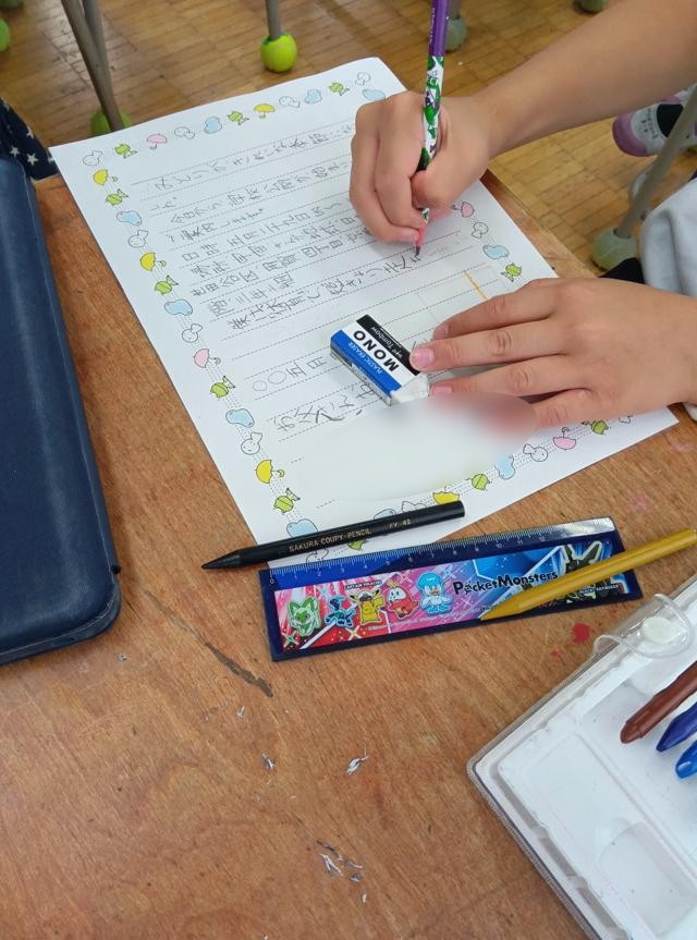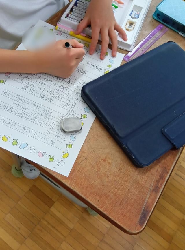 さて、手紙の書き方を学習している3年生、学校公開へのお誘いのお手紙を書いていました。