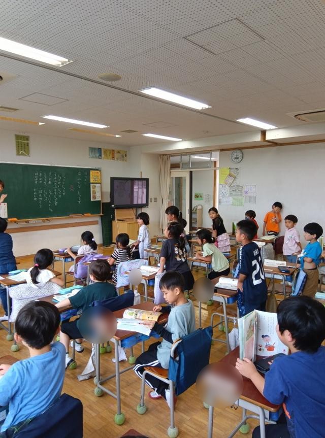 と、クラスごとに取り組む内容は違いましたが、どの学級でもよく手が挙がってたくさん意見が出されていました。先生も学年の先生が順に交代していきます。仮学級のときにお世話になったので、みんな知っていて「久しぶり」という感じでしょうか。