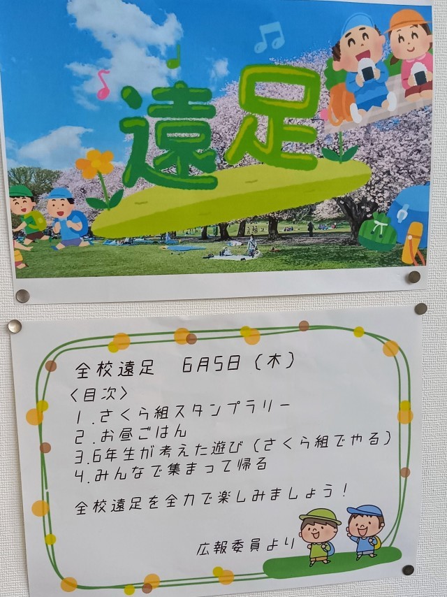 明日の遠足のポスターや今週から順次始まっていく水泳指導についてのポスターを作っていたのは広報委員会でした。