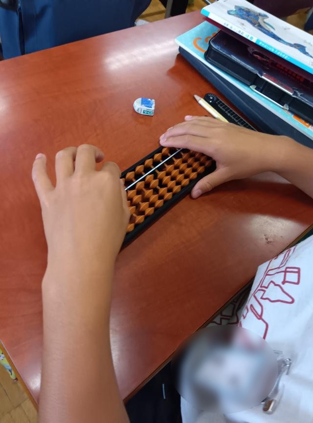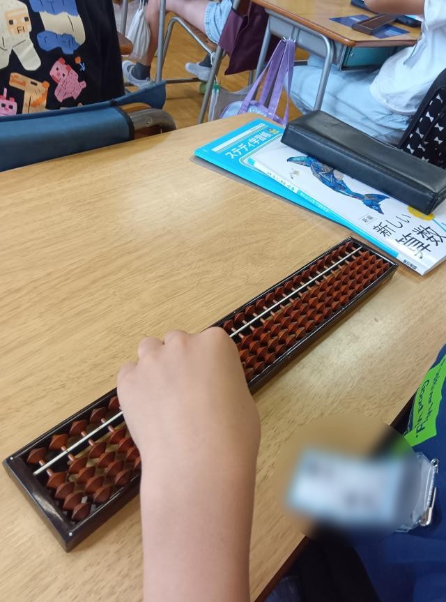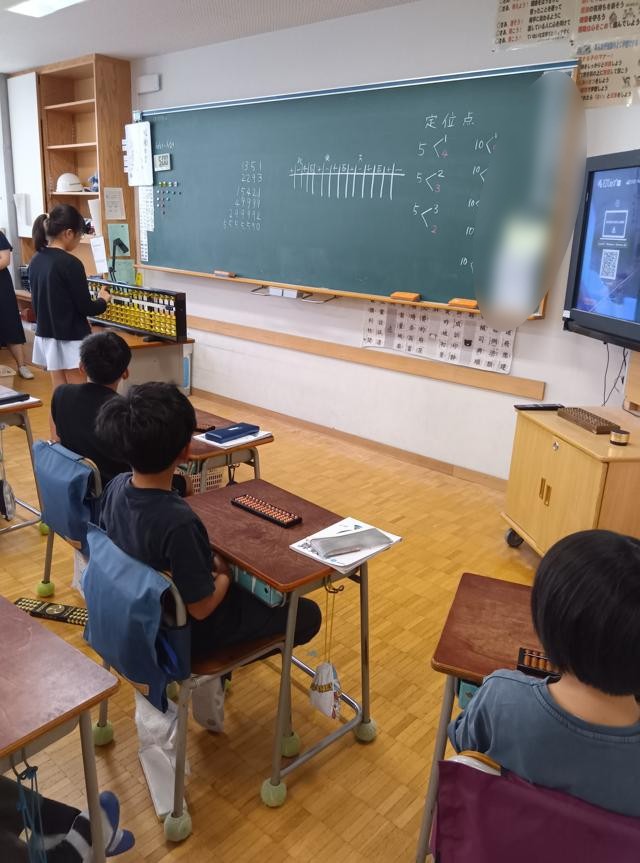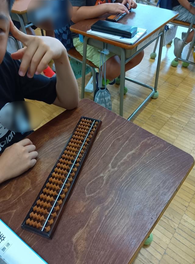 4年生が、算数で「珠算(そろばん)」の学習をしていました。