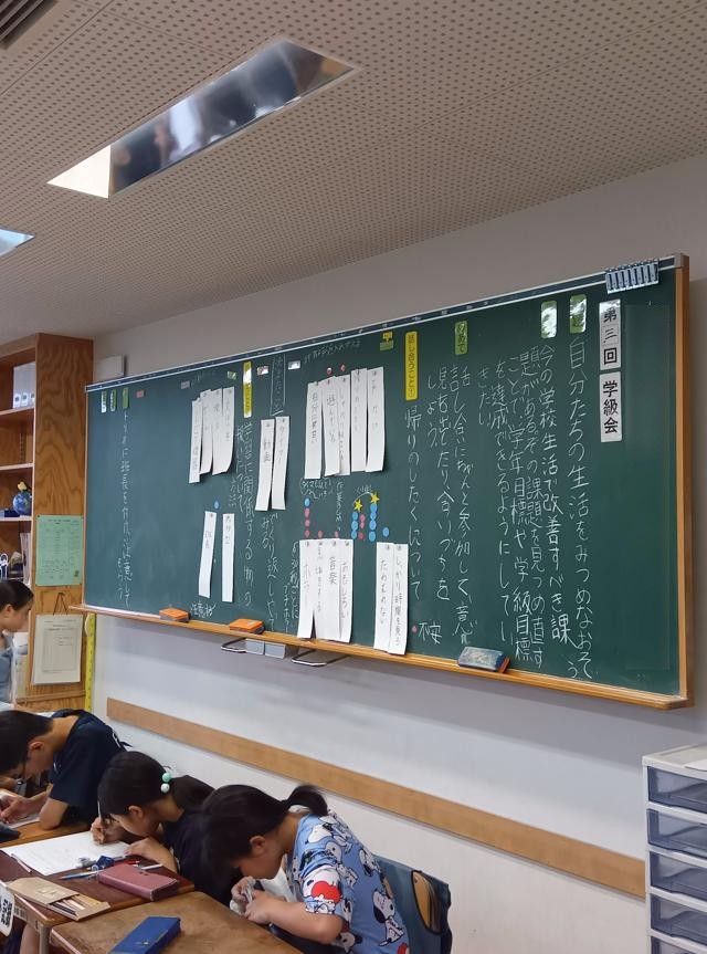 この時期に、一旦ここまでを振り返り、こういった議題が出されて、学級として考えるということは、これからに向けてとても大切なことだと思います。1学期の残り、そして日光林間学園、長い目で見れば卒業に向けてつながっていくのではないでしょうか。今回の話し合いでよりよい方向に学級や学年が向かっていくことを願います。