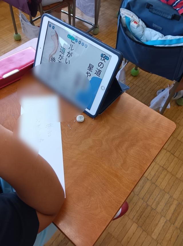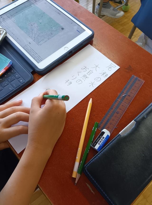 1枚目の写真、5年生に関係のある都道府県の形を表しているのですが、お分かりになるでしょうか。そうです、群馬県です。今週出かけた川場移動教室で行った、川場村のある群馬県です。緑のところは山。群馬県は山がたくさんある県でした。移動教室のまとめの学習でしょうか、俳句や川柳を詠んだり、野生動物について調べた結果をまとめたりしていました。題材になっていたのが、